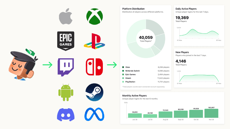Players don’t only exist inside your game; they live across Discord, Twitch, Reddit, email, and countless other touchpoints. Knowing that the person chatting in your Discord is also one of your most loyal players is invaluable. And depending on your audience, email might still be a powerful communication tool. You need to understand who your players are, where they spend their time, and how best to reach them.