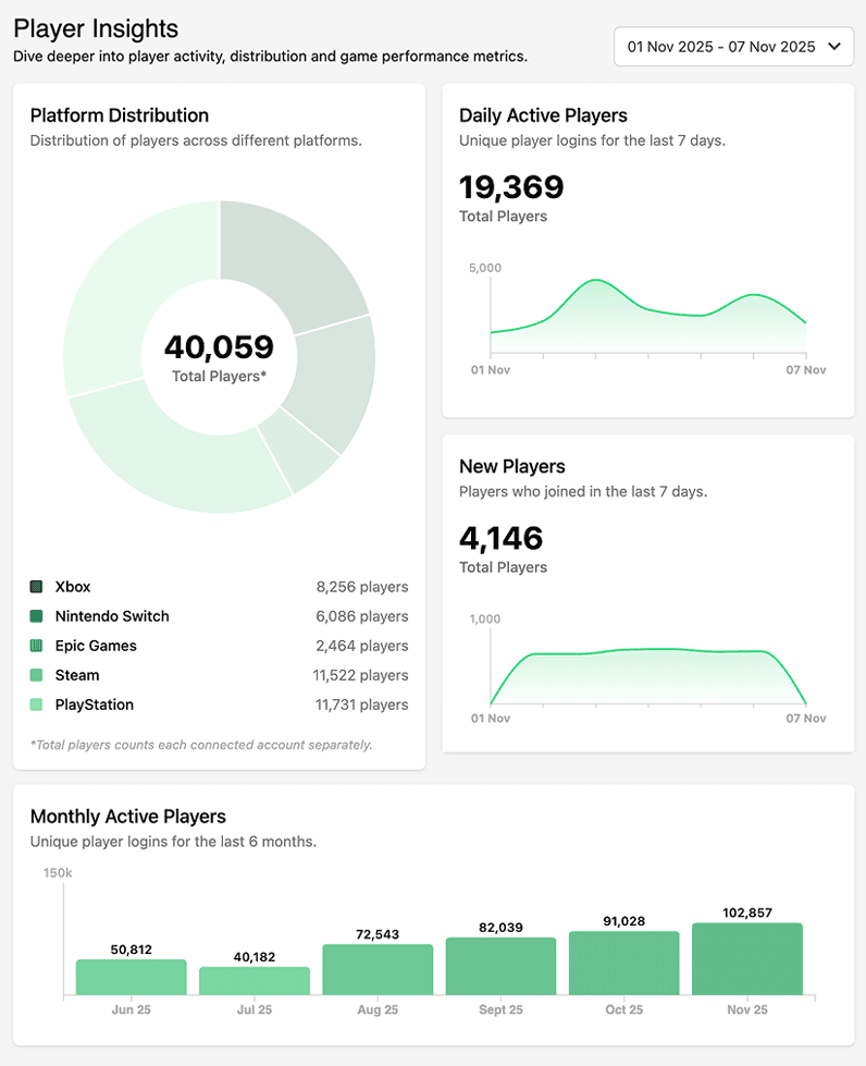 And this is just the start. Over the next few weeks, we’ll be expanding Insights with additional data, including average playtime and player regions, to give you even deeper visibility into your audience.