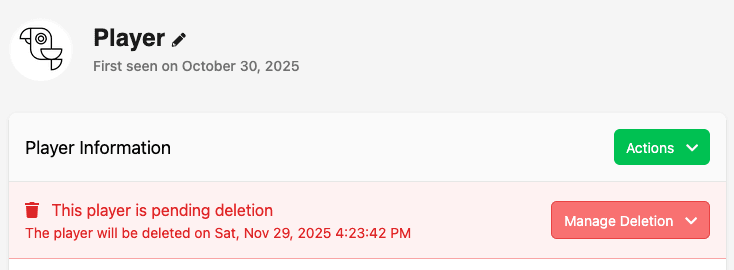 You can now see when a player has requested to delete their account and when the deletion is scheduled to occur. This information is now available in the Player Overview in the Web Console.
